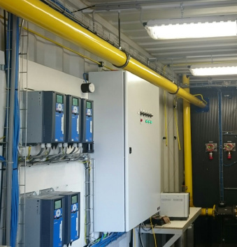 Next, the conditioned gas passes the second blower, which creates sufficient pressure for the gas motor generator downstream. The gas composition is monitored and recorded with a Gas Chromatograph, and inline gas measurements devices are installed to monitor and record levels of Chlorine, Fluorine and SO2 in a bypass over the second blower. In case the gas is “off spec”, the “on spec” pipeline is blocked by the interlocked flow control valves, and the “off spec” gas is transferred via the “off spec” pipeline to a diesel generator; the process will be halted.