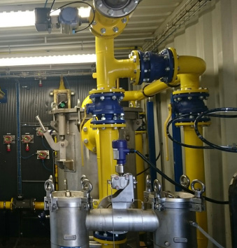 The product gas is continuously monitored and recorded with a Gas Chromatograph, which determines if the product gas is “on spec” or “off spec”. On-spec product gas is subsequently conditioned through a series of gas filters:
